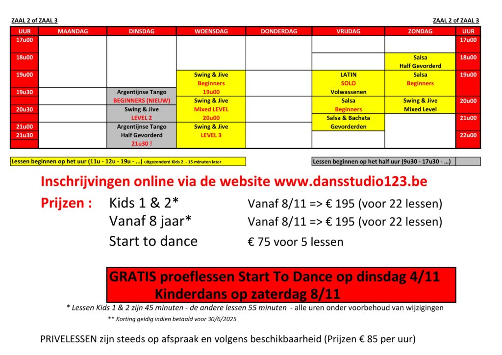 Voor meer informatie = > mail naar info@dansstudio123.be of kijk ook even onder specials !